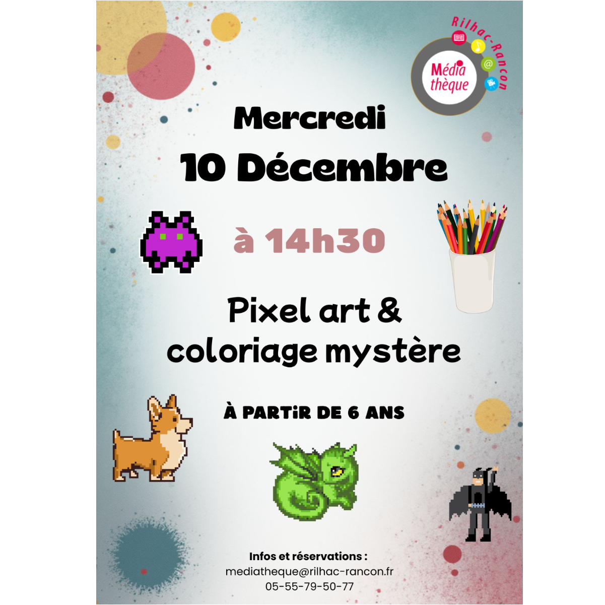 Atelier Pixel art & coloriages mystères le Mercredi 10 décembre, à partir de 14h30 à la médiathèque.
