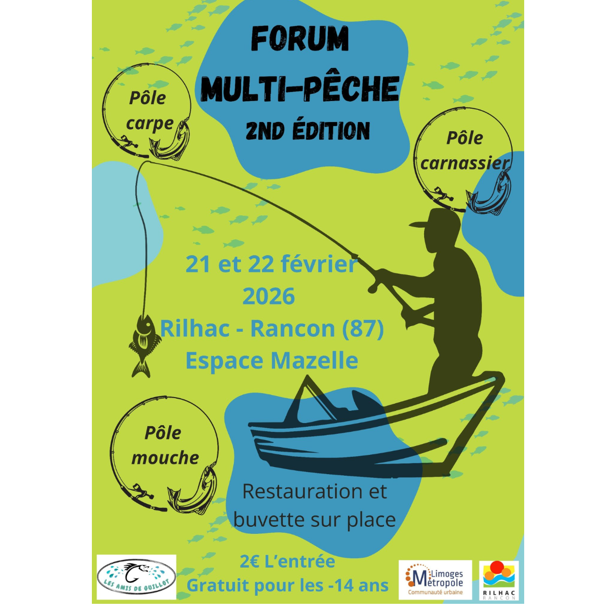 L'association Les Amis de Guillot, organise la 2ème édition du Forum Multi-Pêche qui se déroulera le samedi 21 février de 9h00 à 19h00 et le dimanche 22 février de 9h00 à 17h00 à l'Espace Mazelle.