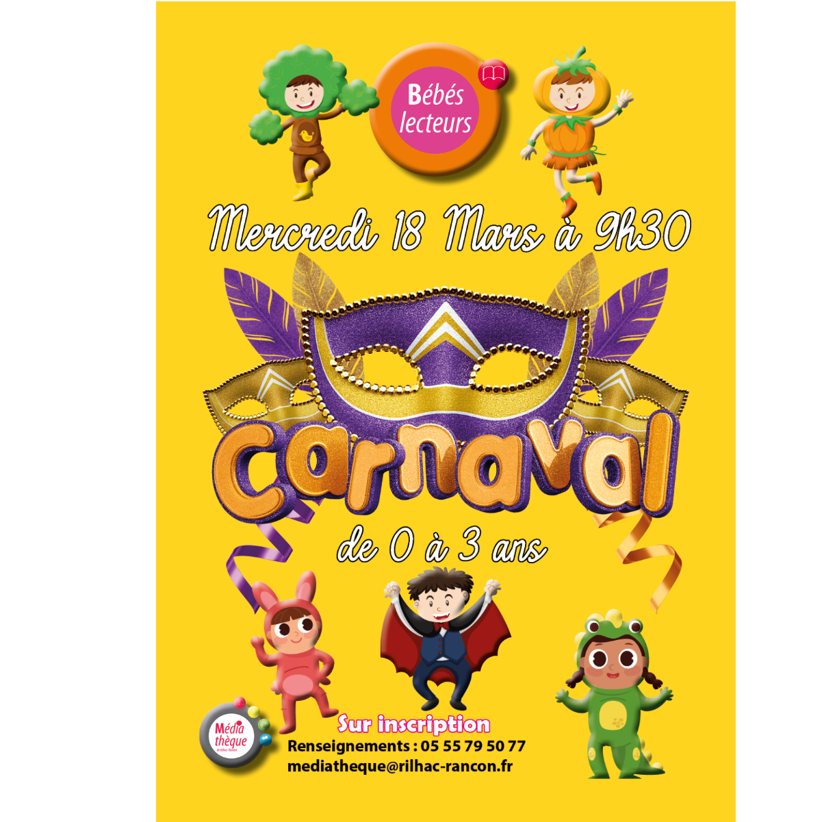 L'équipe de la médiathèque vous propose un atelier sur le thème du CARNAVAL, le mercredi 18 mars à 9H30.