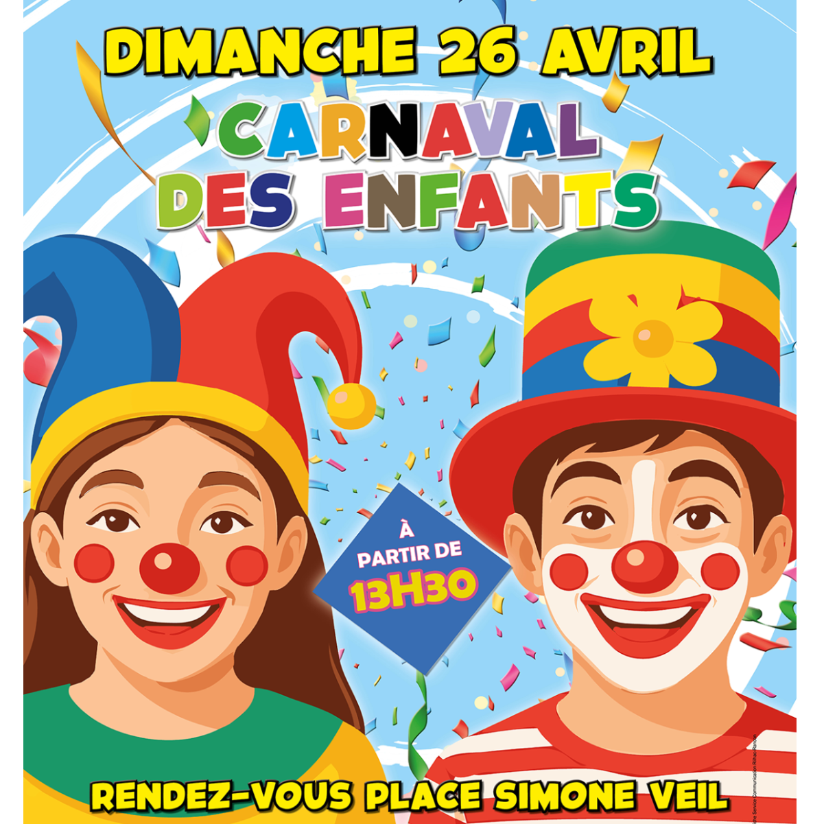 Rendez-vous le dimanche 26 avril 2026, place Simone Veil, à partir de 13h30 pour le Carnaval des enfants.