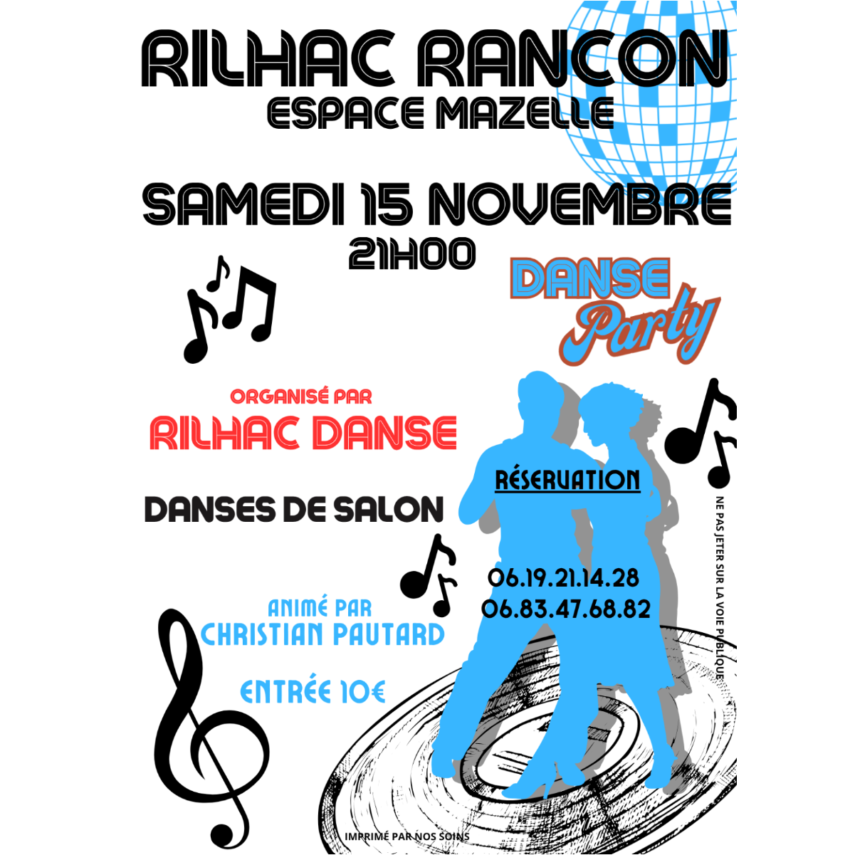 Rilhac Danse organise une soirée "DANS PARTY, DANSE DE SALON" le samedi 15 novembre à 21H à l'Espace MAZELLE.